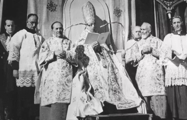 Hình: Đức Giáo hoàng Piô XII công bố tín điều Đức Mẹ Hồn Xác Lên Trời, ngày 01 tháng 11 năm 1950. (ảnh: Public Domain)