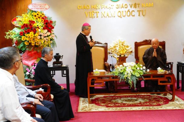 Sắp sửa tới Đại lễ Vesak, Đại lễ của Giáo hội Phật giáo. Ngày hôm nay, chúng tôi đại diện cho các linh mục, tu sĩ, cũng như giáo dân trong Tổng Giáo phận, chúng tôi rất là hân hạnh được đến chúc mừng Đại lễ của Giáo hội Phật giáo