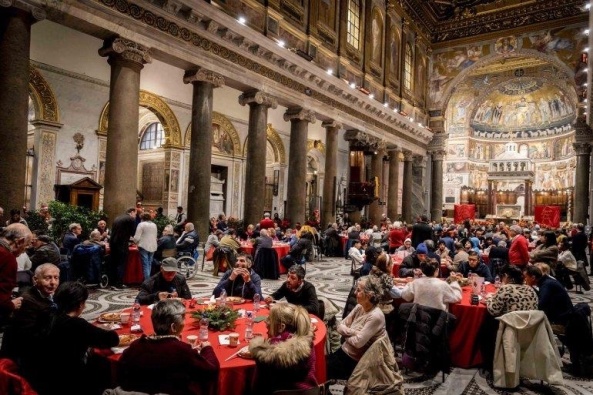 Những người hưởng ứng tham gia bữa ăn Giáng sinh do Cộng đồng thánh Egidio tổ chức với sự cộng tác của những người hảo tâm cũng như những người thiện nguyện là những người vô gia cư, người cao tuổi, các gia đình gặp khó khăn, những người tị nạn đến Ý qua các hành lang nhân đạo, một số được cứu khỏi thảm kịch nhân đạo tại Gaza: rất nhiều câu chuyện và hoàn cảnh khác nhau của những người đã cùng ngồi vào bàn tiệc Giáng sinh của Sant’Egidio, tại Vương cung thánh đường Santa Maria in Trastevere ở Rôma và nhiều nơi trên khắp nơi.