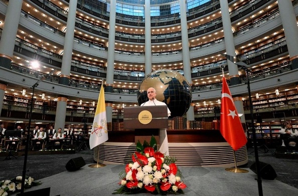 Vào lúc 15g30 ngày 27.11.2025, tại Thư viện Quốc gia Thổ Nhĩ Kỳ, Đức Giáo hoàng Lêô XIV đã có cuộc Gặp gỡ với Chính quyền, Xã hội dân sự và Ngoại giao đoàn. Sau bài phát biểu của Tổng thống Tayyip Erdogan, Đức Thánh Cha đã có bài diễn văn quan trọng, đưa ra những thông điệp chính yếu về hòa bình và đối thoại trước cử tọa là các lãnh đạo và đại diện chính quyền Thổ Nhĩ Kỳ.