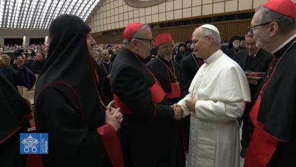 Hiện diện trong buổi tiếp kiến vào sáng thứ Tư ngày 14.05.2025 có Đức Hồng y Claudio Gugerotti, Tổng trưởng Bộ các Giáo hội Đông phương, các Thượng phụ, Hồng y, Giám mục, linh mục tu sĩ và khoảng 4.000 tín hữu thuộc các Giáo hội của các nghi lễ khác nhau.