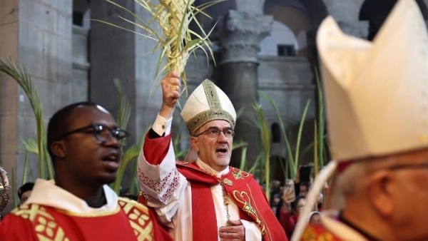 Đức Hồng y Pierbattista Pizzaballa chủ sự nghi thức kiệu Lá dịp Lễ Lá năm 2025 (ANSA)