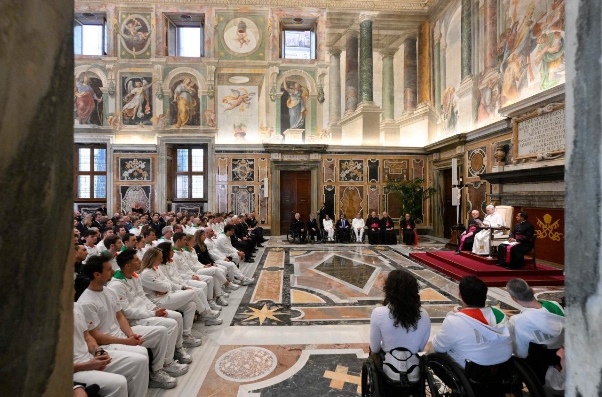 ĐGH Lêô XIV gặp gỡ các vận động viên tham gia Thế vận hội mùa Đông Milano–Cortina 2026 (@Vatican Media)