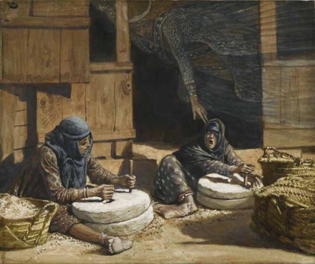Thầy bảo các con: “Trong đêm ấy sẽ có hai người trên một giường, thì một người bị đem đi, và người kia sẽ được để lại. Hai phụ nữ xay cùng một cối, thì một người sẽ bị đem đi, còn người kia sẽ được để lại. Hai người ở ngoài đồng, thì một người bị đem đi, và người kia được để lại”.