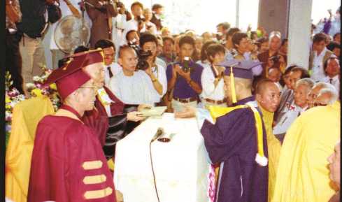 Trưởng lão HT.Thích Minh Châu trao bằng tốt nghiệp cho Tăng Ni sinh tốt nghiệp khóa III