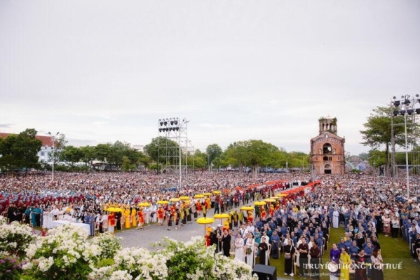 Đã có khoảng hơn 90.000 tín hữu sáng ngày 15.08.2025 tham dự cuộc rước kiệu tôn vinh Đức Mẹ La Vang – Đấng cách đây 227 năm đã từng hiện ra tại nơi này để phù trợ, đỡ nâng, đồng hành với các giáo dân đang lâm cảnh khốn cùng vì bách hại.