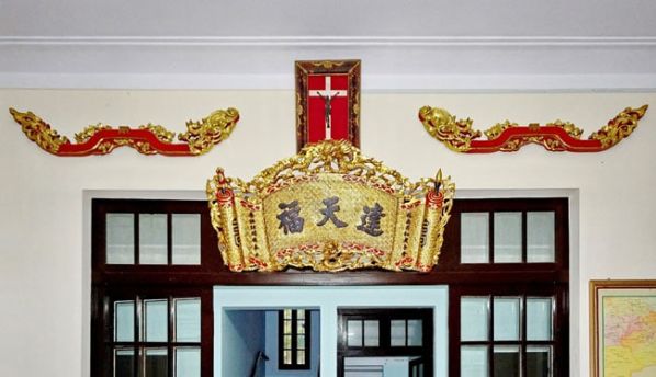 Ngày 29.12.2017 một số anh em Cựu Chủng sinh Tiểu Chủng viện Sao Biển Nha Trang do Linh mục Nguyễn Quang Vinh (bạn cùng lớp Tiểu Chủng viện Sao Biển với Đức Tổng Giám mục Giuse Nguyễn Chí Linh) dẫn đầu khởi hành ra Huế mừng lễ kỷ niệm 25 năm (30/12/1992 – 30/12/2017) thụ phong Linh mục của Đức Tổng Giám mục Giuse Nguyễn Chí Linh. Sau một đêm nghỉ tại Tòa Tổng Giám mục Huế, sáng ngày 30.12.2017 trong lúc chờ đến giờ tham dự Thánh lễ, một số anh em Cựu Chủng sinh Tiểu Chủng viện Sao Biển cùng linh mục Nguyễn Quang Vinh tham quan phòng Truyền thống của Tổng Giáo phận. Riêng tôi thì dạo ngoài sân Tòa Tổng Giám mục. Trong lúc đang dạo quanh, có một anh ra gọi tôi vào phòng Truyền thống đọc giùm chữ Hán trên một tấm hoành phi.