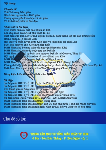 Phần Hai của tập san như biểu hiện của chữ TRÍ qua các sinh hoạt, những sự kiện, cuộc gặp gỡ hay sứ điệp tôn giáo quan trọng gửi đến nhau trong các dịp đại lễ tôn giáo. Hy vọng sự hiểu biết lẫn nhau giúp gia tăng tình huynh đệ và phát triển một xã hội đa tôn giáo và văn hóa trên quê hương chúng ta .