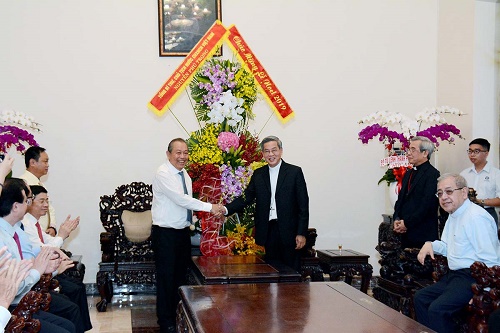 Ông PTT cảm ơn sự đóng góp của ĐHY và ghi nhận: Giáo hội Công giáo đã gắn bó với kinh tế, xã hội, giáo dục của quê hương, chăm lo cho dân nghèo, xây dựng các phong trào. Ông nói: “Những khu đồng bào Công giáo rất an ninh thịnh trị. Điều đó là quý báu, chúng tôi rất trân trọng. Kính chúc ĐHY nhiều sức khỏe, mọi sự như ý sau cuộc đời đóng góp cho đất nước.”