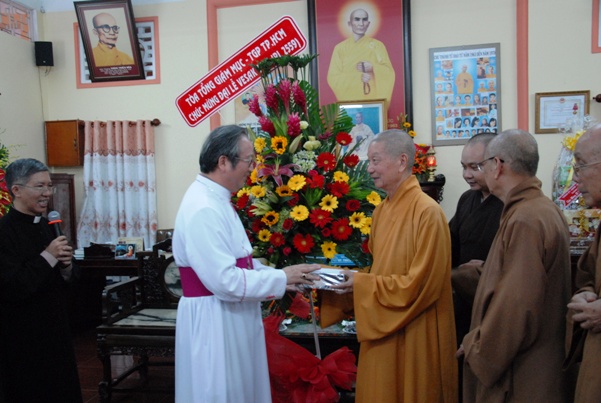 Đức Tổng Giám mục Phaolô Bùi Văn Đọc cùng phái đoàn Công giáo đến mừng Ban Trị sự Phật giáo Tp.HCM