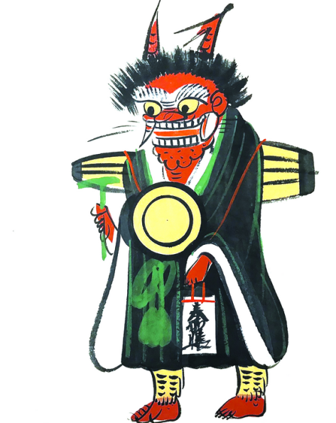 Con quỷ niệm Phật (Oni no Nembutsu), bức tranh dân gian Otsu-e của Takahashi Shozan. Mực và màu trên giấy, cuối thế kỷ XX