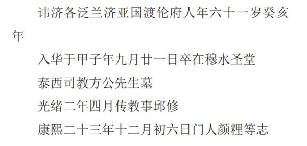 Hàng 2: 入華于甲子年九月廿一日卒在穆水聖堂